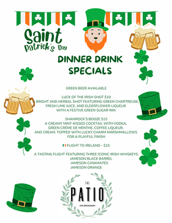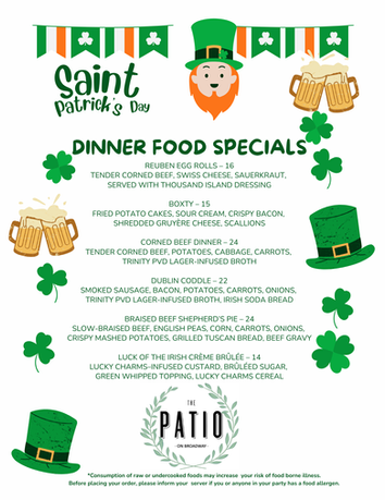 Starts Saturday, 14th Until Tuesday the 17th - Limited specials will be available next Saturday for Providence's Saint Patrick's Day Parade